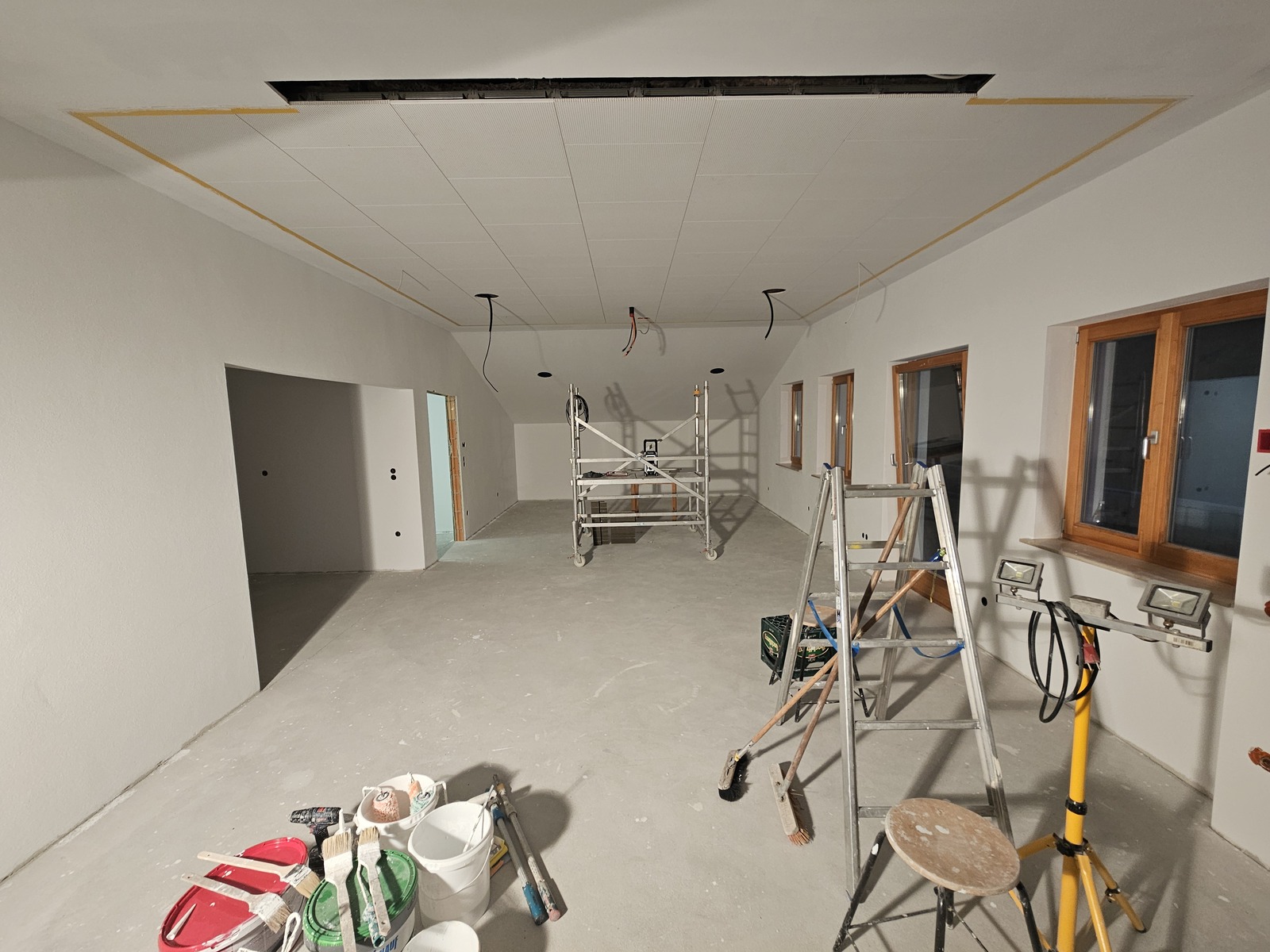Der Vorsitzende unserer Wehr, Daniel Köppl, hieß die Anwesenden dann in der oberen Fahrzeughalle, die für diesen feierlichen Abend genug Platz bot, willkommen und blickte auf die vergangenen Monate zurück. Nach den ersten Ausräumarbeiten Mitte November 2024 über den Umbau eben dieser Halle zu einem provisorischen Schulungsraum bis zu den ersten Abbrucharbeiten wurde im neuen Jahr mit schnellen Schritten das Obergeschoß entkernt, Mauern entfernt, Neue einzogen und bald schon konnten die Verputzarbeiten beginnen, so Köppl. Es wurde nicht nur der Fußboden, die komplette Elektroinstallation sowie die Sanitäranlagen erneuert, sondern auch eine Akustikdecke und moderne Medientechnik installiert.