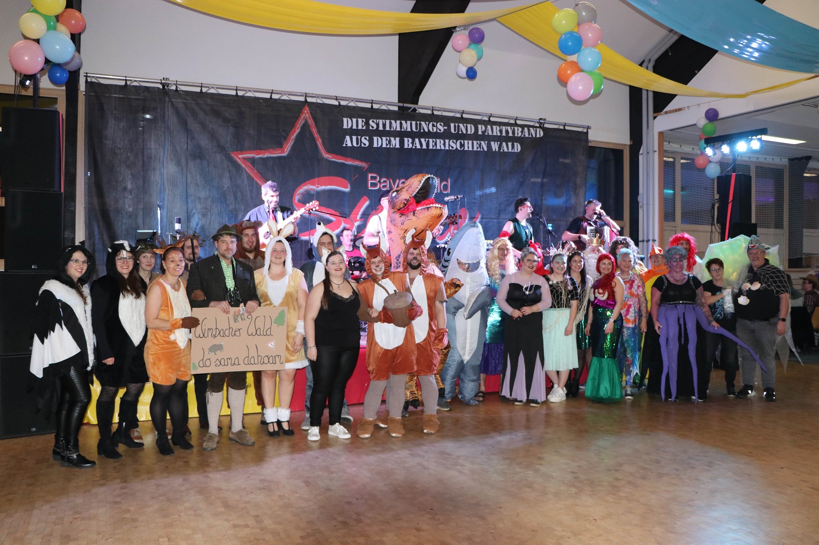 Nach einigen Tanzrunden wurden die besten Kostüme und Masken prämiert. Als Jury fungierten Bürgermeisterin Monika Bergmann, der ehemalige Vorsitzende der Feuerwehr Blaibach, Heinrich Krieger, sowie der Ehrenvorsitzende Alfred Knobloch. Auch in diesem Jahr füllte sich die Tanzfläche schnell und zahlreiche Einzelpersonen aber auch viele besonders große Gruppen marschierten zur Musik mehrere Runden, um sich den kritischen Augen der Jury zu präsentieren. Die drei Unabhängigen waren sich jedoch schnell einig, und so wurde die Gruppe „der Wimbacher Wald“ zum Sieger gekürt. Platz zwei ging an die Meeresbewohner und den dritten Platz räumte der wandelnde Dinosaurier ab. Für sie gab es jeweils Gutscheine für die Bar, die auch in diesem Jahr wieder großen Andrang erfuhr.