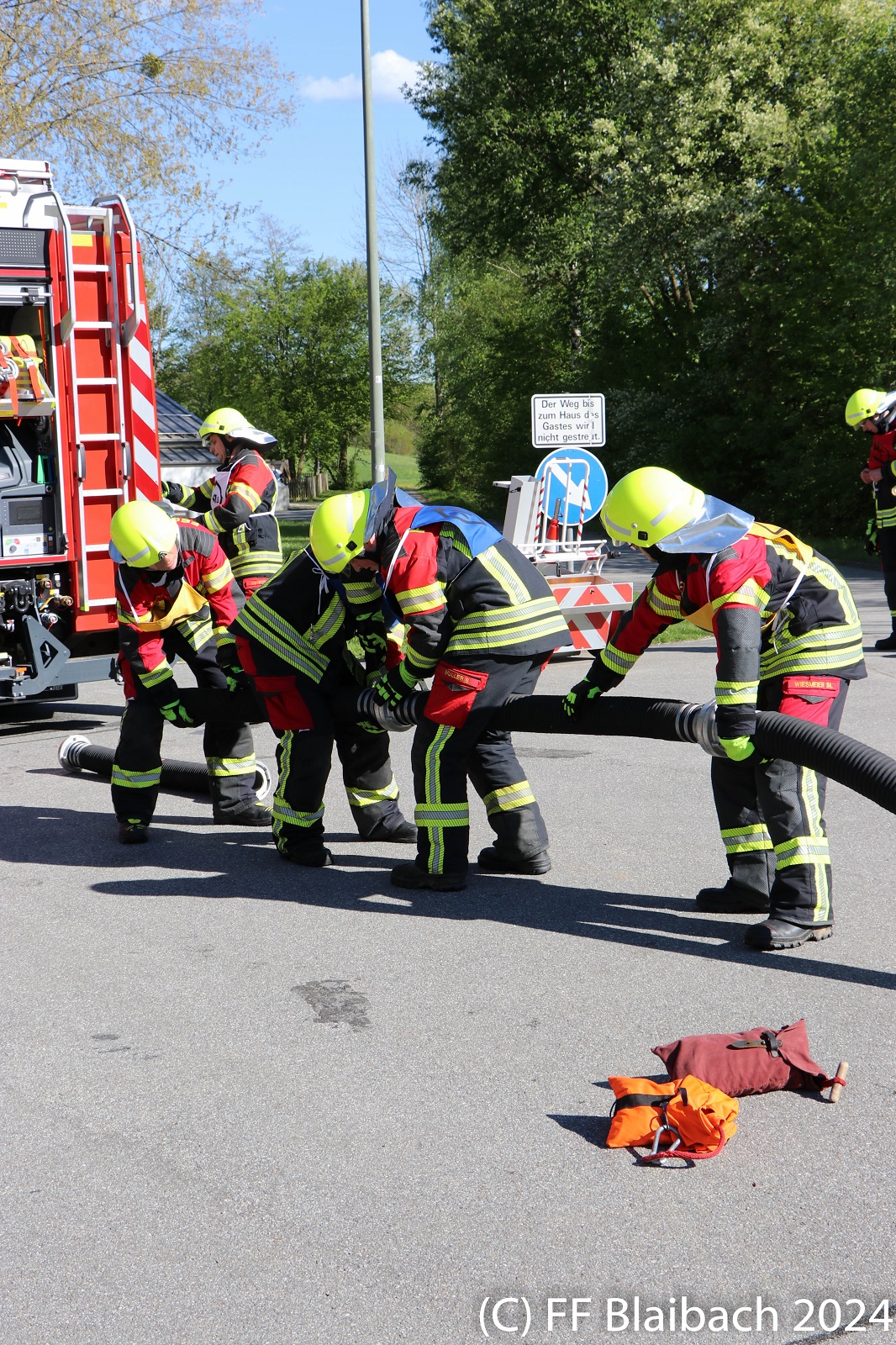 Unter Beisein unserer Bürgermeisterin Monika Bergmann sowie Kommandant Thomas Raab unterzog sich am Samstagnachmittag die 84. Löschgruppe der Feuerwehr Blaibach der Leistungsprüfung in der Variante 1, welche ohne Atemschutz durchgeführt wird. Als Schiedsrichter fungierten Kreisbrandmeister Alexander Beier und unser Hauptbrandmeister Rudolf Raab sowie Hauptlöschmeister Martin Silberbauer von der FF Arrach als Zeitnehmer. Die unterschiedlichen Zusatzaufgaben als auch Knoten, der dreiteilige Löschangriff und die zu kuppelnde Saugleitung wurden von der Mannschaft bravourös gemeistert. Die Schiedsrichter bescheinigten der Löschgruppe eine saubere und geordnete Arbeit und gratulierten nach der Abnahme allen Teilnehmern zur bestandenen Prüfung. KBM Alexander Beier ermutigte die Anwesenden, sich im Rahmen von Lehrgängen im Feuerwehrwesen weiterzubilden. Kommandant Thomas Raab würdigte die Leistung der Mannschaft und sprach seinen Dank an Gruppenführer Andreas Müller für die Ausbildung der Gruppe aus, weiterhin dankte er den Schiedsrichtern sowie Bürgermeisterin Monika Bergmann für die moralische Unterstützung der Truppe. Sie beglückwünschte ebenfalls die erfolgreichen Teilnehmer und lobte ebenfalls die einwandfreie Arbeit.