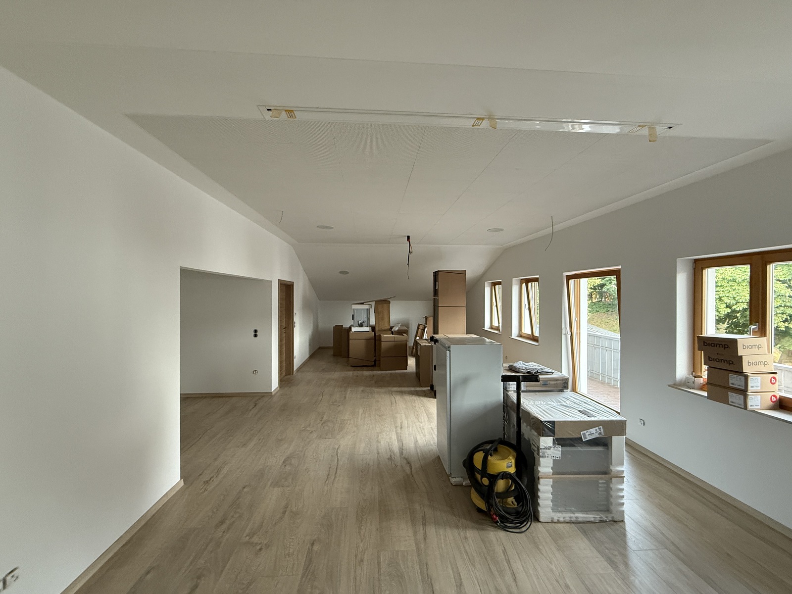 Der Vorsitzende unserer Wehr, Daniel Köppl, hieß die Anwesenden dann in der oberen Fahrzeughalle, die für diesen feierlichen Abend genug Platz bot, willkommen und blickte auf die vergangenen Monate zurück. Nach den ersten Ausräumarbeiten Mitte November 2024 über den Umbau eben dieser Halle zu einem provisorischen Schulungsraum bis zu den ersten Abbrucharbeiten wurde im neuen Jahr mit schnellen Schritten das Obergeschoß entkernt, Mauern entfernt, Neue einzogen und bald schon konnten die Verputzarbeiten beginnen, so Köppl. Es wurde nicht nur der Fußboden, die komplette Elektroinstallation sowie die Sanitäranlagen erneuert, sondern auch eine Akustikdecke und moderne Medientechnik installiert.