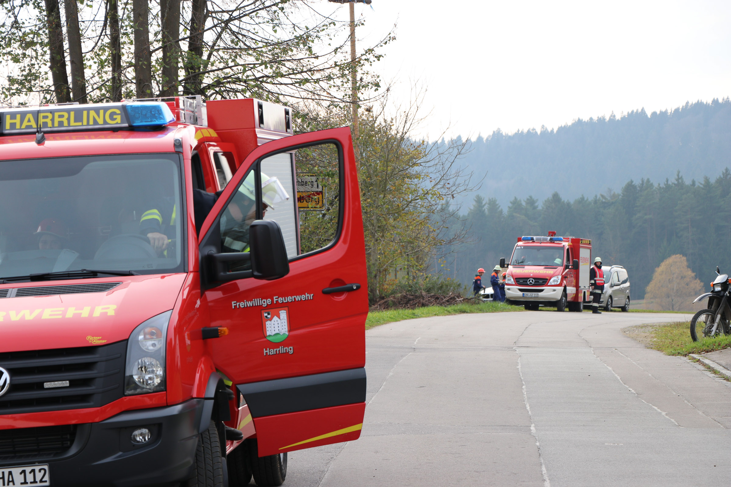 Die nachfolgenden Feuerwehren aus Staning, Miltach, Oberndorf, Eismannsberg, Altrandsberg, Harrling und Wolfersdorf bauten von dort aus eine rund 800 Meter lange Förderstrecke der Straße entlang Richtung Kolmberg auf.